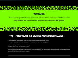 UX/UI-Design und Entwicklung der offiziellen Website für das immersive Kunst- und Technologie-Event HumanLab: Evolution in Berlin. Das Hauptziel des Projekts war die visuelle Präsentation des futuristischen Markenauftritts sowie die effiziente Generierung von Ticketverkäufen.